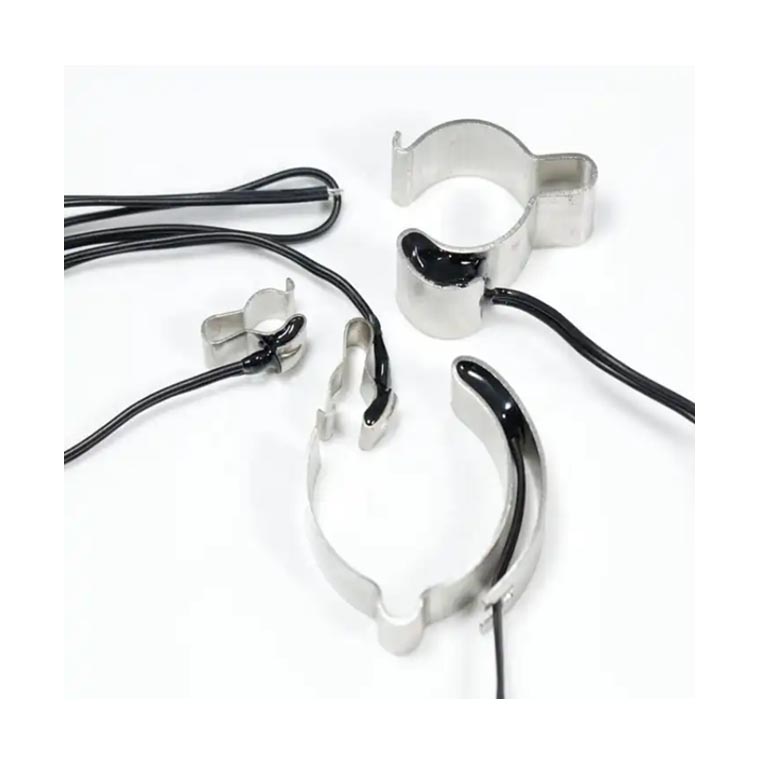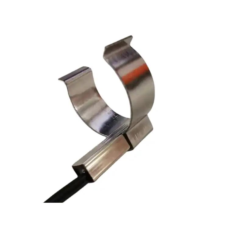 Este tipo de sonda, incorpora una pinza de anclaje de tamaño, grosor y material personalizable. Ideal para su aplicación a ejes en movimiento o tuberia que precisan un elemento de sujeción cilíndrica en el la medición de temperatura. Igual que el resto de productos NTC ofrece un coste económico a la vez que presenta una gran fiabilidad y precisión.